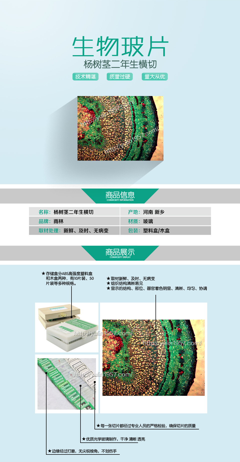 严格按照生物玻片的标准生产,是高质量、高清晰的切片标本。