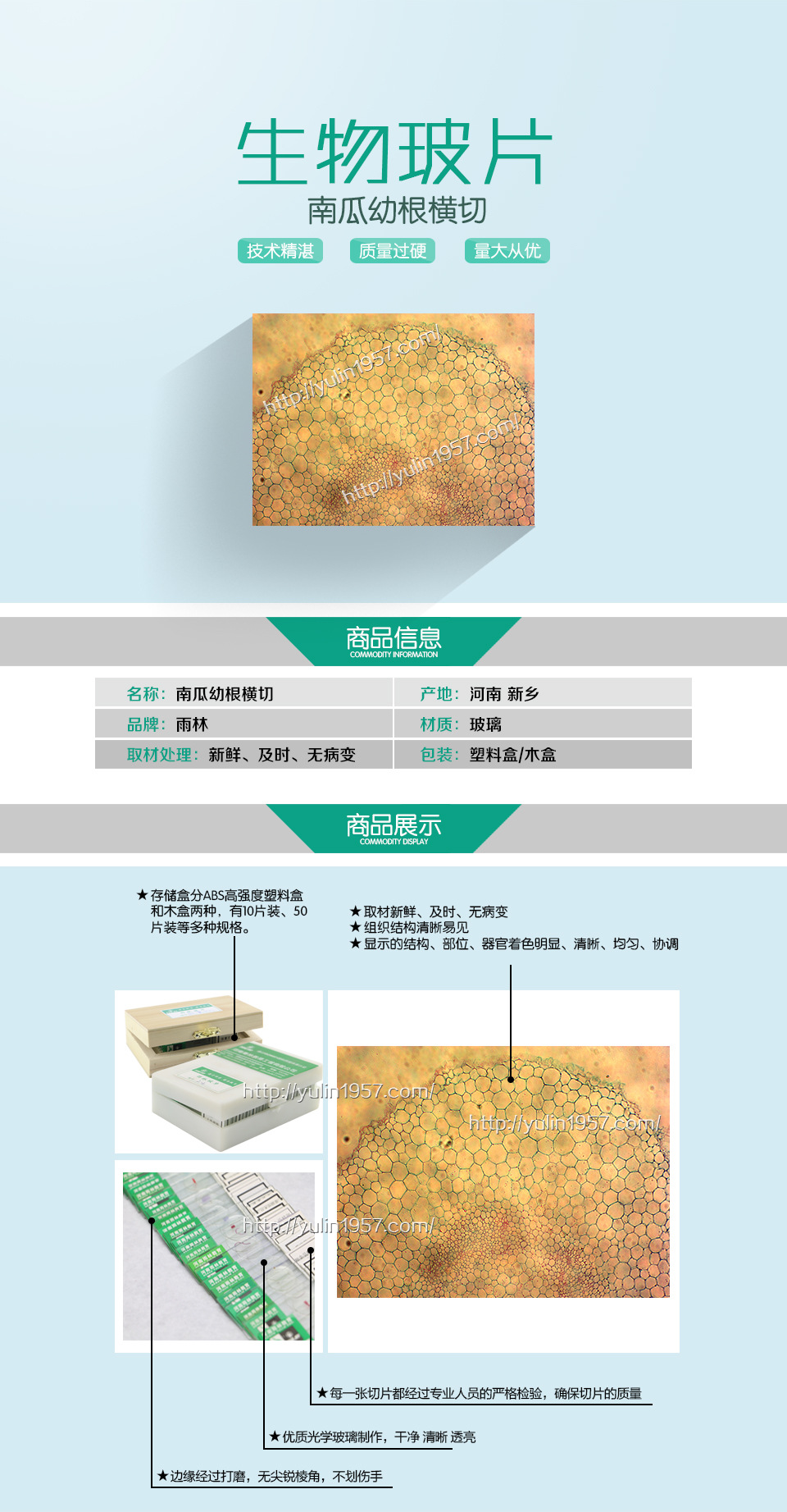 严格按照生物玻片的标准生产,是高质量、高清晰的切片标本。