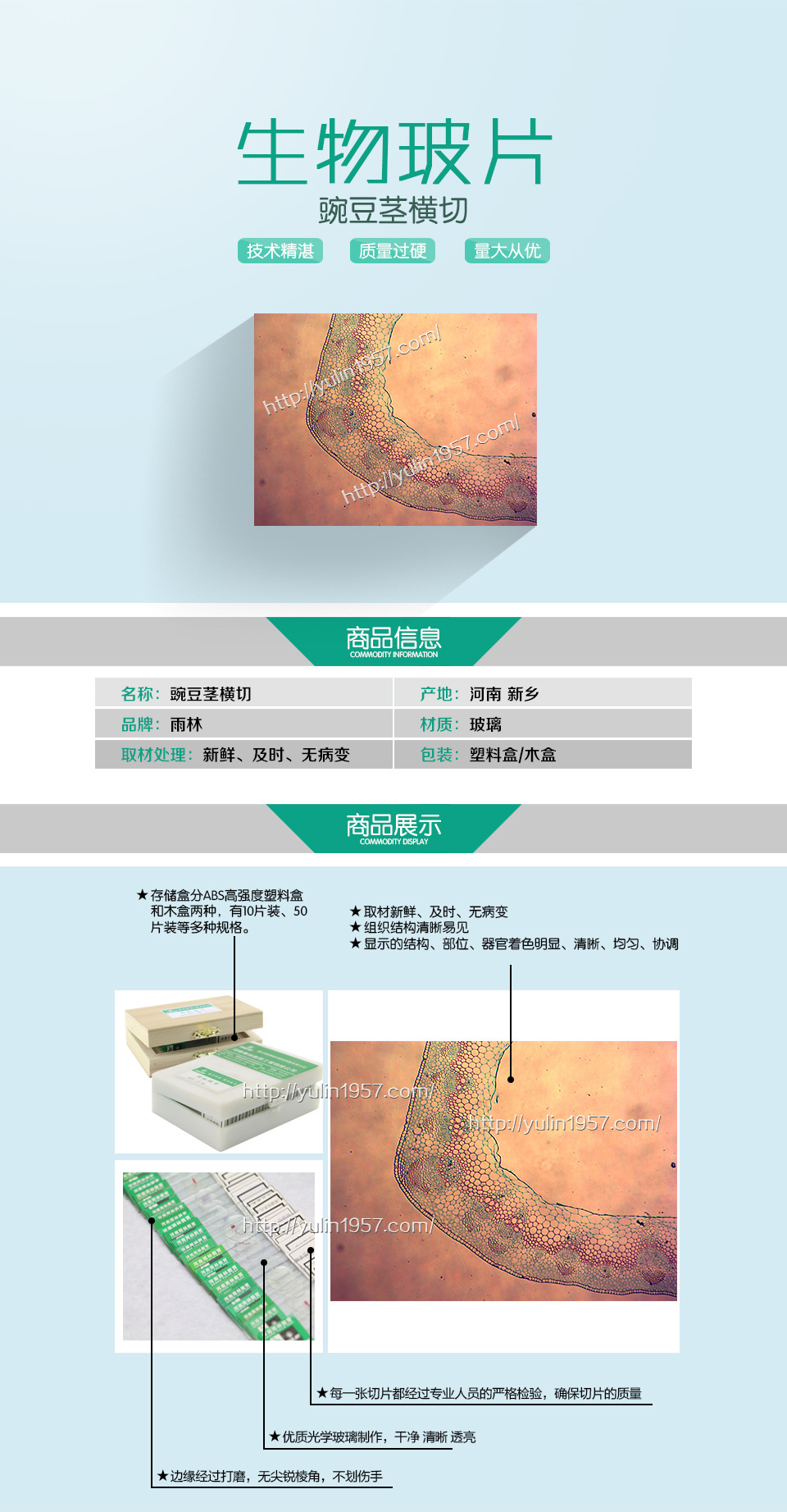 严格按照生物玻片的标准生产,是高质量、高清晰的切片标本。