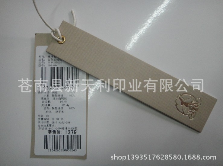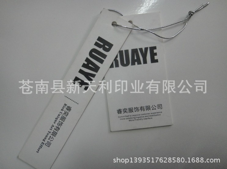 1.吊牌拼版生产350克 A级铜版纸,90mm*54mm以内,服装吊牌不管多少数量均享受免费腹亚膜;免费打孔,不含其它特殊工艺,其它任何特殊工艺另行报价