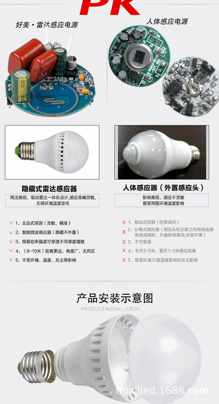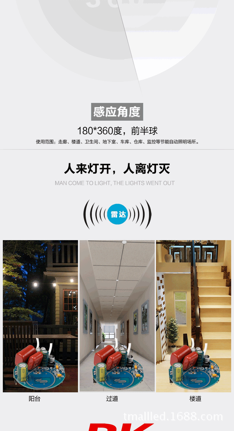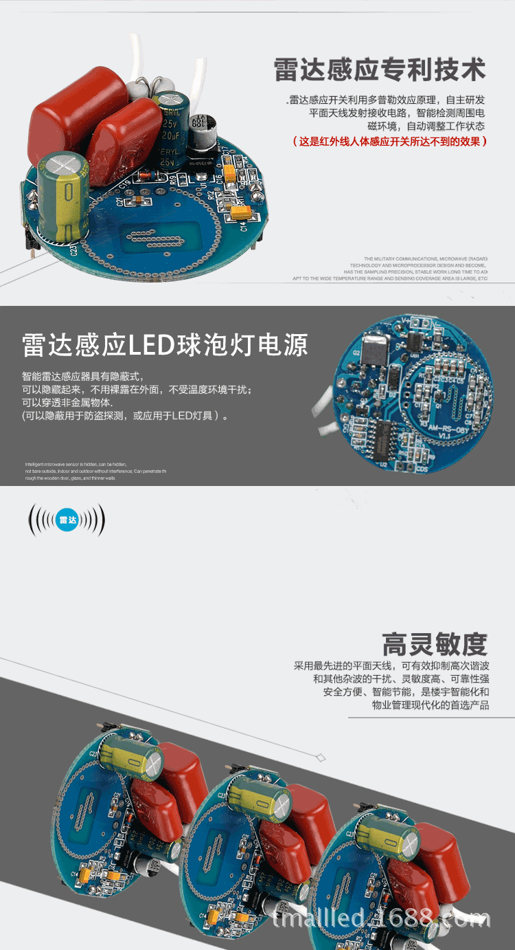 二:AM-RA-08Y高品质7W雷达感应LED球泡灯电源驱动源产品细节