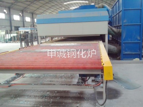 玻璃钢化炉是利用物理或化学方法,在玻璃表面形成压应力层、内部形成拉应力层。
