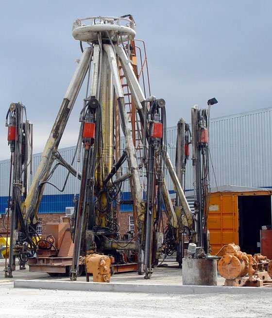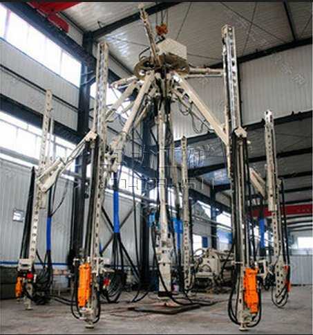 伞形钻机(简称伞钻)是实施机械化开挖立井而专门研制的窜孔设备。它像一把雨伞,撑开能进行钻凿炮眼,收拢能方便井筒运送,是实现快速打井,缩短建井周期,提高经济效益的必不可少的专用设备。