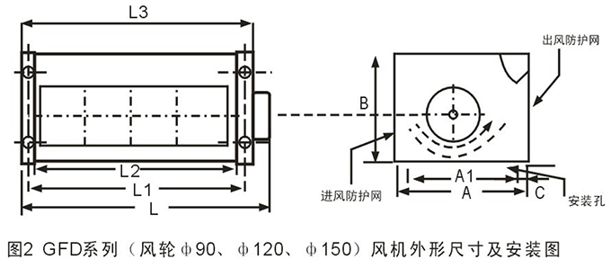 | 型 号 | L | L1 | L2 | L3 | B | B1 | A | A1 | C | 底脚安装孔 | | GFD440-90 | 440 | 400 | 380 | 416 | 130 | 100 | 150 | 120 | 15 | 4-φ7*13 | | GFD560-90 | 560 | 520 | 500 | 536 | 130 | 100 | 150 | 120 | 15 | 4-φ7*13 | | GFD660-90 | 660 | 620 | 600 | 635 | 130 | 100 | 150 | 120 | 15 | 4-φ7*13 | | GFD760-90 | 760 | 720 | 700 | 736 | 130 | 100 | 150 | 120 | 15 | 4-φ7*13 | | GFD860-90 | 860 | 820 | 800 | 836 | 130 | 100 | 150 | 120 | 15 | 4-φ7*13 | | GFD365-120 | 365 | 325 | 305 | 341 | 150 | 120 | 170 | 150 | 15 | 4-φ7*10 | | GFD385-120 | 385 | 345 | 325 | 361 | 150 | 120 | 170 | 150 | 15 | 4-φ7*10 | | GFD440-120 | 440 | 400 | 380 | 416 | 150 | 120 | 170 | 150 | 15 | 4-φ7*10 | | GFD470-120 | 470 | 430 | 410 | 446 | 150 | 120 | 170 | 150 | 15 | 4-φ7*10 | | GFD490-120 | 490 | 450 | 430 | 466 | 150 | 120 | 170 | 150 | 15 | 4-φ7*10 | | GFD520-120 | 520 | 480 | 460 | 496 | 150 | 120 | 170 | 150 | 15 | 4-φ7*10 | | GFD560-120 | 560 | 520 | 500 | 536 | 150 | 120 | 170 | 150 | 15 | 4-φ7*10 | | GFD590-120 | 590 | 550 | 430 | 566 | 150 | 120 | 170 | 150 | 15 | 4-φ7*10 | | GFD690-120 | 690 | 650 | 630 | 666 | 150 | 120 | 170 | 150 | 15 | 4-φ7*10 | | GFD770-120 | 770 | 730 | 710 | 746 | 150 | 120 | 170 | 150 | 15 | 4-φ7*10 | | GFD860-120 | 860 | 820 | 800 | 836 | 150 | 120 | 170 | 150 | 15 | 4-φ7*10 | | GFD365-150 | 365 | 325 | 305 | 341 | 190 | 162 | 200 | 172 | 15 | 4-φ7*10 | | GFD470-150 | 470 | 430 | 410 | 446 | 190 | 162 | 200 | 172 | 15 | 4-φ7*10 | | GFD490-150 | 490 | 450 | 430 | 466 | 190 | 162 | 200 | 172 | 15 | 4-φ7*10 | | GFD590-150 | 590 | 550 | 530 | 566 | 190 | 162 | 200 | 172 | 15 | 4-φ7*10 | | GFD690-150 | 690 | 650 | 630 | 666 | 190 | 162 | 200 | 172 | 15 | 4-φ7*10 | | GFD770-150 | 770 | 730 | 710 | 746 | 190 | 162 | 200 | 172 | 15 | 4-φ7*10 |