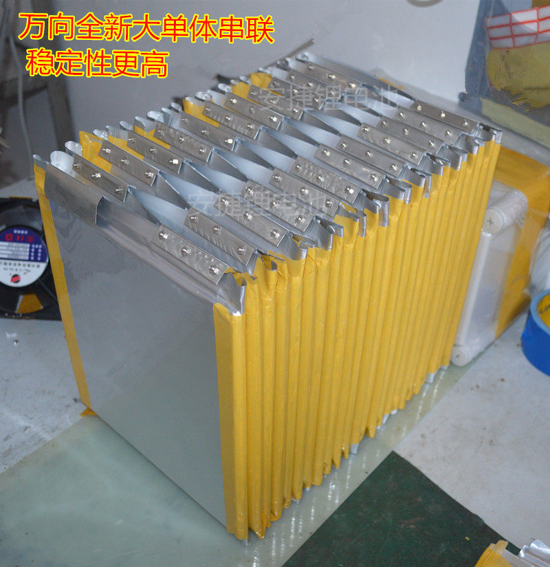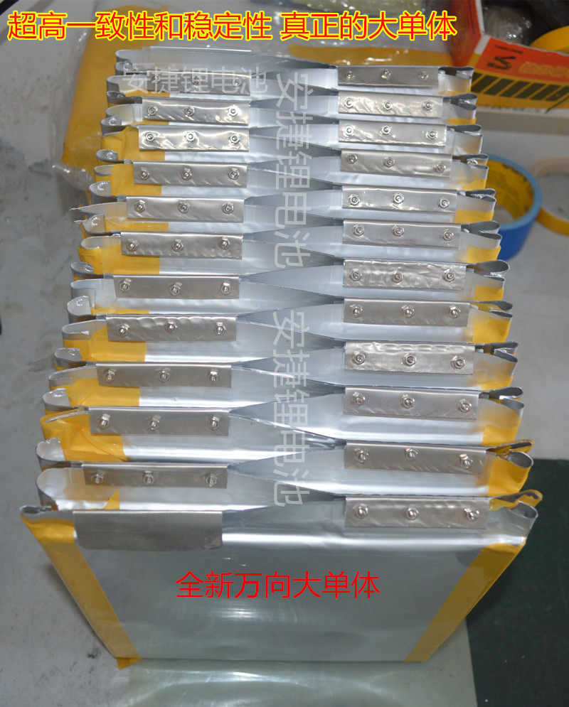 三,单体大容量50AH的,采用原装超大超宽电极。市面很多都是用小单体10AH或者15AH甚至更小的容量并联的,电极薄弱无法保证大电流通过,一组电池组里面单体数量越少越稳定,一致性也更好。反之越多越容易出现问题,对于您以后的使用来说稳定性是非常重要的。
