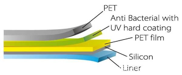 相比一般的防刮pet保护膜,本产品在硬化涂层之上又做了Anti Bacterial 抗菌处理,该物质能有效抑制细菌的滋生,以此达到表面抗菌的效果,为普通的贴膜增加了环保卫生的效果。
