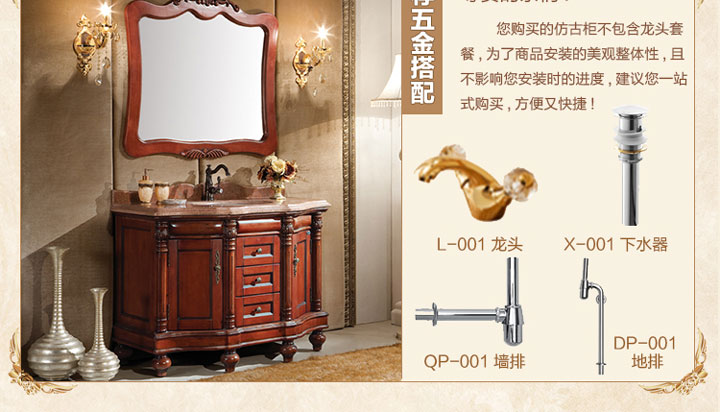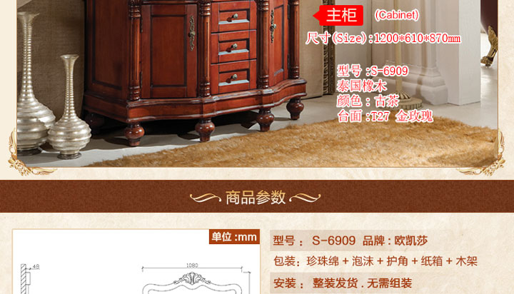 欧式浴室柜组合柜 高端质优实木浴室柜6909