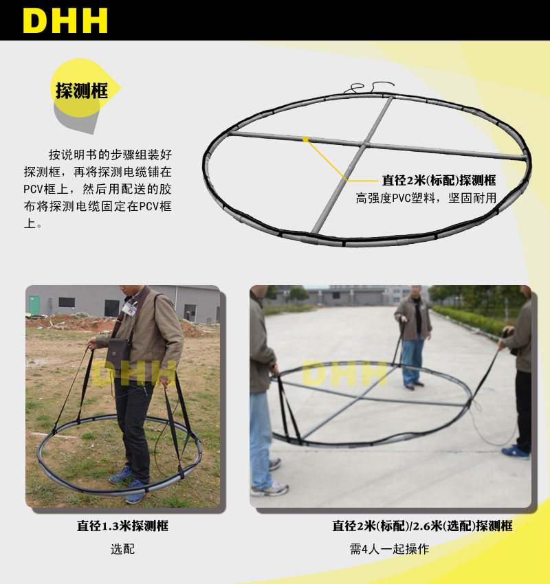 注意: 在探测过程中, 由于探测区域的土壤状况较差或受地磁影响,仪器的声音变得不稳定时, 需重新进行地平衡调节. - 在探测过程中,保持探测盘与地面的距离为约5厘米(1m?m的探测框距离地面约20~50厘米)移动探