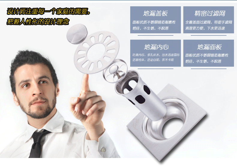 是连接排水管道系统与室内地面的重要接口,作为住宅中排水系统的重要部件,它的性能好坏直接影响室内空气的质量,对卫浴间的异味控制非常重要。目前市场上产品的材质主要分为三类:不锈钢、pvc和全铜。由于该产品埋在地面以下,且要求密封好,所以不能经常更换,因此选择适当的材质非常重要。。不锈钢材质因为无镀层冲压耐用是比较受欢迎的一种;而pvc材质价格便宜,防臭效果也不错,但是材质过脆,易老化,尤其北方的冬天气温低,用不了太长时间就需更换,因此市场也不看好;还有是全铜镀铬材质,它镀层厚,也是不错选择,因为不锈钢和铜都是抗腐蚀较好的。