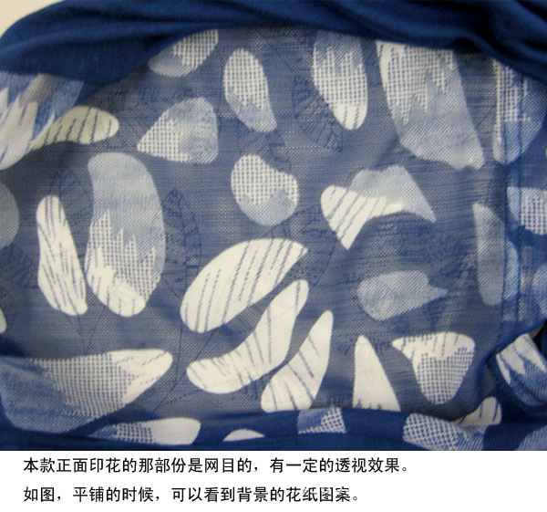 本款短裤正面印花部份的材质为网目,有一定透视效果。