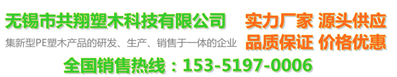 无锡市共翔塑木科技有限公司坐落于中国太湖之滨,素有紫砂之都的江苏省宜兴,是一家集新型PE塑木产品的研发、生产、销售为一体的企业,公司一期投资1500万元,占地30000平方米,拥有配套化塑木生产线8条,年生产量10000余吨。