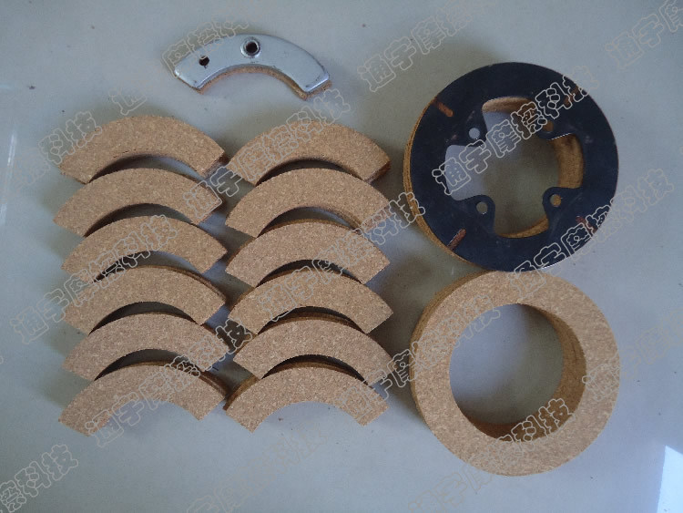 摩擦材料制品在装配使用之前,有需进行钻孔、铆装装配等机械加工,才能制成刹车片总成或离合器总成。在摩擦工作过程中,摩擦材料除了要承受很高温度的同时,还要承受较大的压力与剪切力。因此要求摩擦材料必须具有足够的机械强度,以保证在加工或使用过程中不出现破损与碎裂。离合器片更是要求具有足够的抗冲击强度、静弯曲强度、应变值以及旋转破坏强度,为了保证离合器片在高速旋转的工作条件下不发生破裂。我公司采用特殊的纤维增强材料作为的基材,它赋予摩擦制品足够的机械强度,使其能承受摩擦片在生产过程中的磨削和铆接加工的负荷力以及使用过程中由于制动和传动而产生的冲击力、剪切力、压力。通宇产品适合用于各类机械干式制动器使用,它具有密度小、弯曲强度好、回转爆裂强度高、摩擦系数稳定、磨损率低,在装机使用过程中接合平稳,其综合性能符合配套企业的要求,公司可根据客户要求(来样来图)设计开发所需的各种规格的摩擦材料.