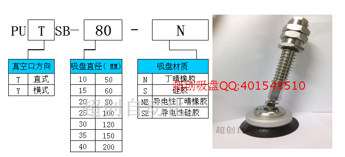 缓冲式金属配件吸盘PUTSB&PUYSB吸盘标准规格: