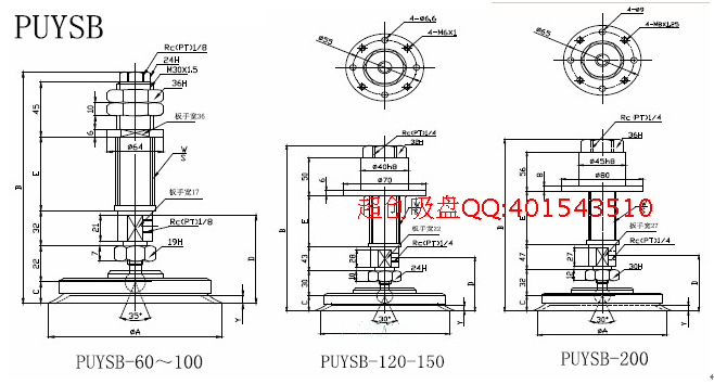 缓冲式金属配件吸盘PUYSB尺寸参数: