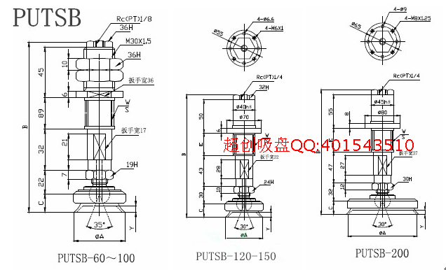 缓冲式金属配件吸盘PUTSB尺寸图: