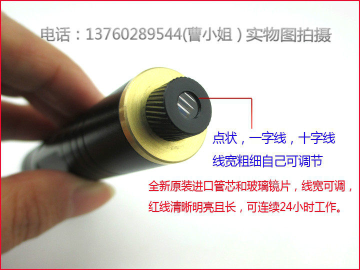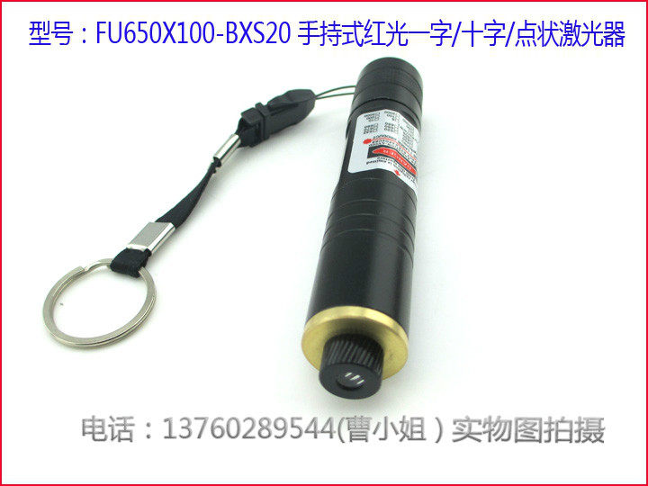 型号:FU650X100-BXS20 波长:650NM功率:100MW 外形尺寸:直径20*105MM 光斑:一字线/十字线/点状(任意选择一种效果)发散角度:10-120度 线宽:可调 输出波段:可见光 锂电池供电:14500 1300mA 4.2V光学透镜:优质玻璃镜片 工作寿命:10000个小时以上
