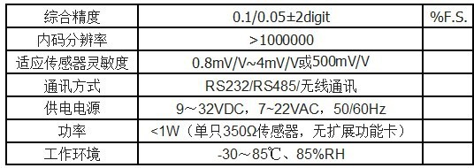 适应传感器灵敏度 0.8mV/V~4mV/V 或500mV/V