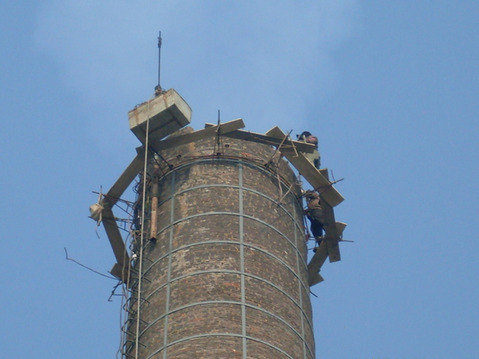 烟囱维修工程:烟囱内壁耐火砖修补更换、倒烟现象、不符合环保要求、严重消耗能源等必须改造烟囱是十分理想的施工方案(我公司运用不停产、无脚手架进行烟囱加高、扩缩烟囱口径、烟囱上部倾斜严重、把烟囱倾斜部份进行拆除、重新砌筑恢复)。