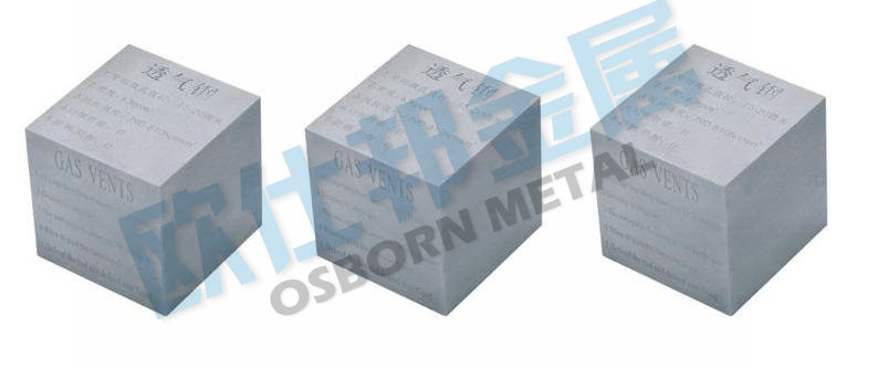 4.节省能源:用于注塑时模腔内的空气能透过模具内的细孔顺利释放,枕压得以降低,减少能量消耗。透气钢使用细则一.在进行研磨加工或任何重型切削后,可能会堵塞微孔。应使用线切割、电脉冲和激光等的软切削加工(软切削是指对工件有轻微作用力的,但不至表面组织产生变化的切削模式),在线切割加工时应稍提高加工速度,太慢有可能在微孔里产生电弧,对钼丝不利。欧仕邦金属建议加工余量大时可以使用硬切削加工,但须留有0.1~0.2mm余量以软加工来完成。在恢复PM-35透气钢的表面进行通气性恢复时,处理之手法有多种:
