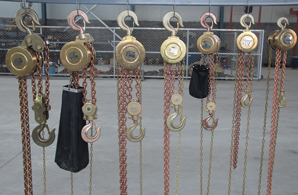 防爆手拉葫芦广泛应用于石油、石化、油站、油库、采气、化工、军工、电力、矿山、电子、铁路等。在作业中产品相互摩擦撞击不会产生机械火花,在易燃易爆场所不引爆气体,有效防止火灾事故。