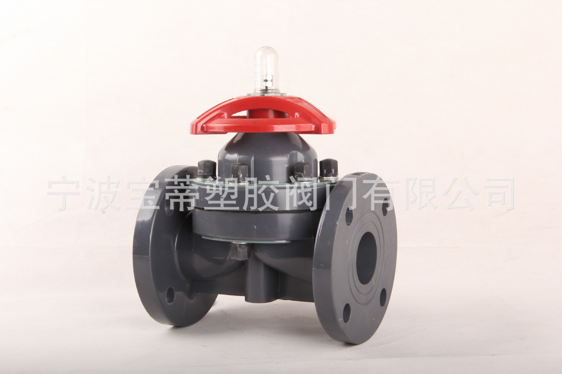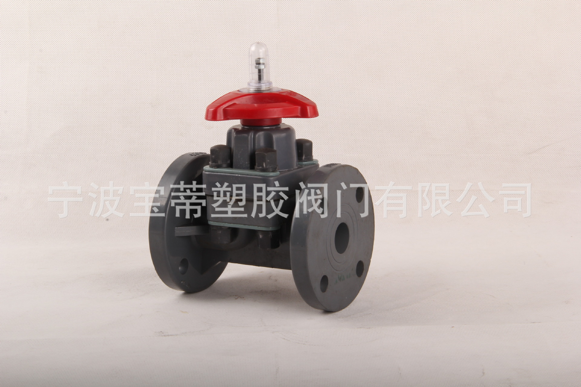 隔膜阀的流量特性接近快开特性,在60%行程前近似为线性,60%后的流量变化不大。气动形式的隔膜阀尚可附装反馈信号、限位器及定位器等装置,以适应自控、程控或调节流量的需要。气动隔膜阀的反馈信号采用无触点传感技术。该产品采用薄膜式推进气缸,替代活塞气缸,排除了活塞环易损坏,造成泄漏而导致无法推动阀门启闭的弊端。当气源发生故障时,尚可操作手轮使阀门启闭。