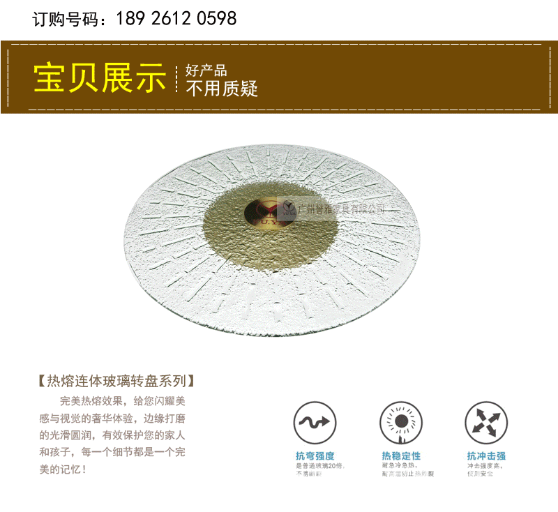| 产品名称 | 热溶连体玻璃转盘 |