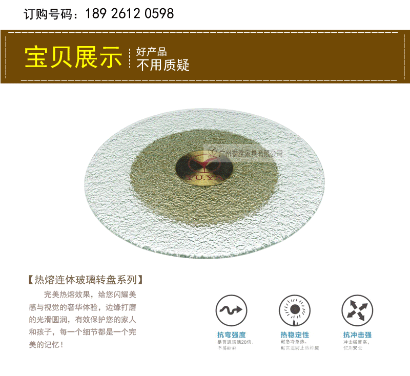 | 产品名称 | 热溶连体玻璃转盘 |