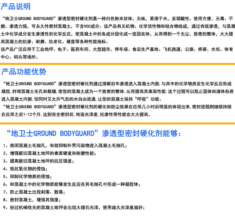 地卫士水泥地面起砂处理剂 混凝土地面起灰密封固化地坪