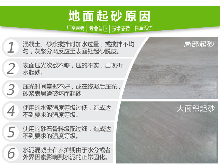 无论是家里的院子,还是新买的房屋的毛坯水泥地面,还是厂房车间只要您的地面起灰起砂了我们都可以帮您解决