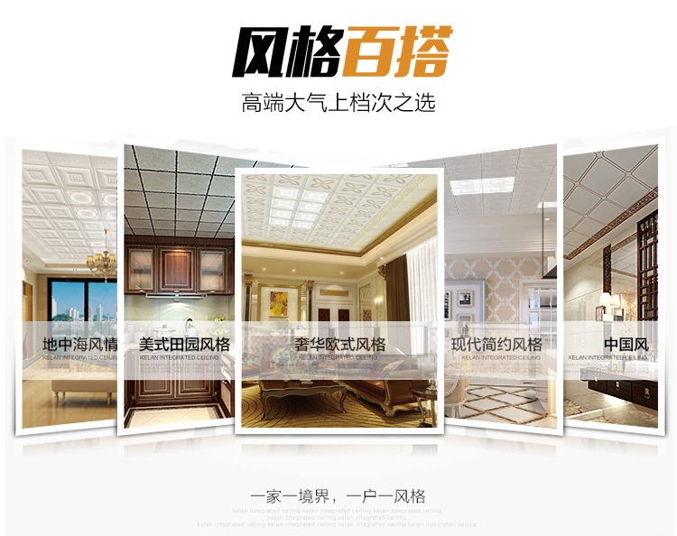 全 屋集成吊顶产品倡导优化 空间设计,致力打造国人家居高品质生活环境的理念。为追求品质生活的消费者量身定做产品,打造品质、创新、时尚、科技的现代居室空间,是现代家装新标准。 所生产的吊顶集取暖、换气、照明、吊顶多功能于一体。在结构上对传统产品做出了突破性的变革,在技术上更添人性化科技,在风格上承载北欧风尚之精髓。产品 涵盖全屋天花吊顶。