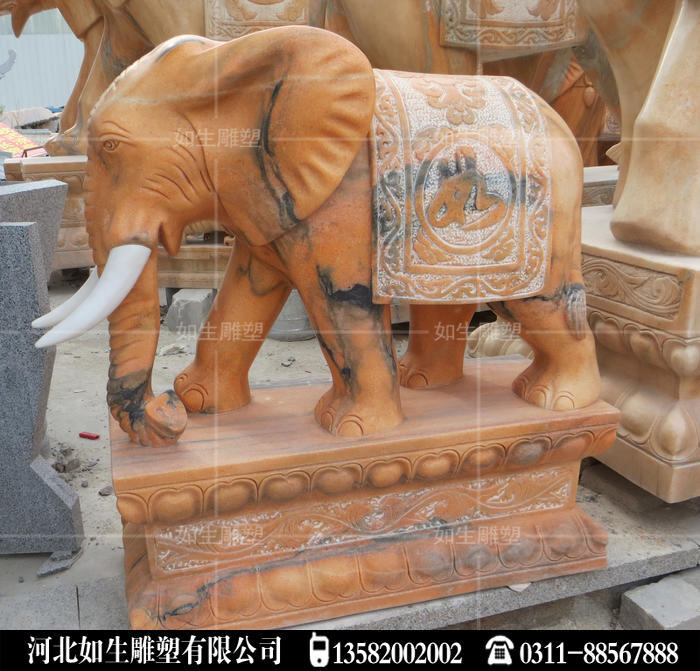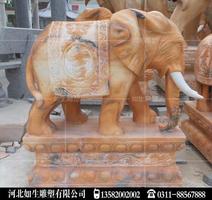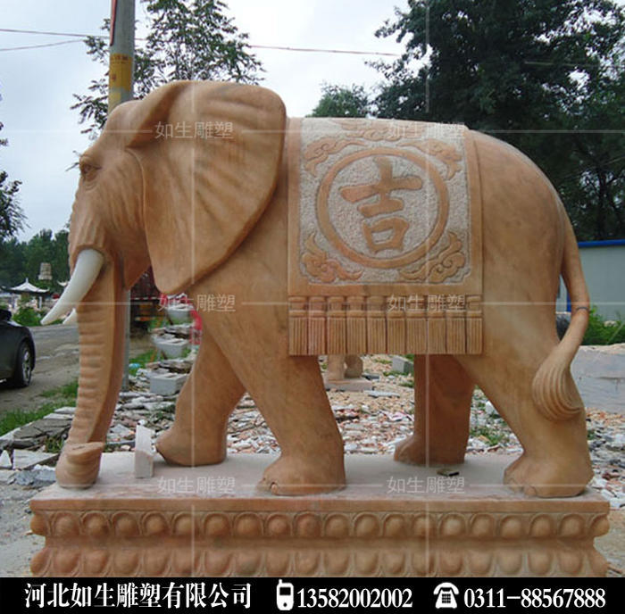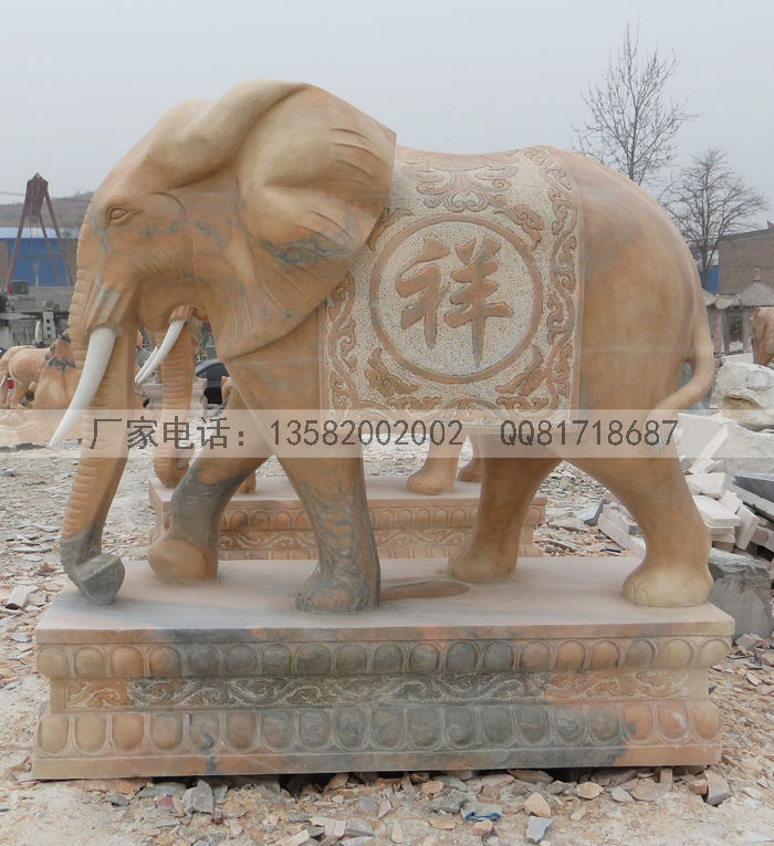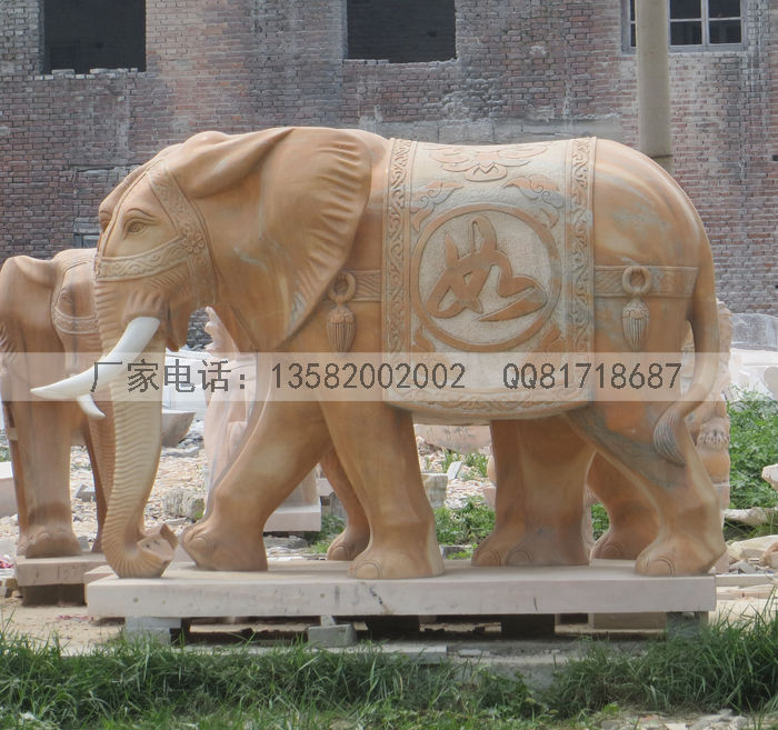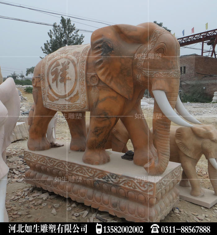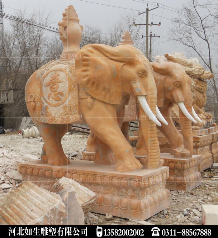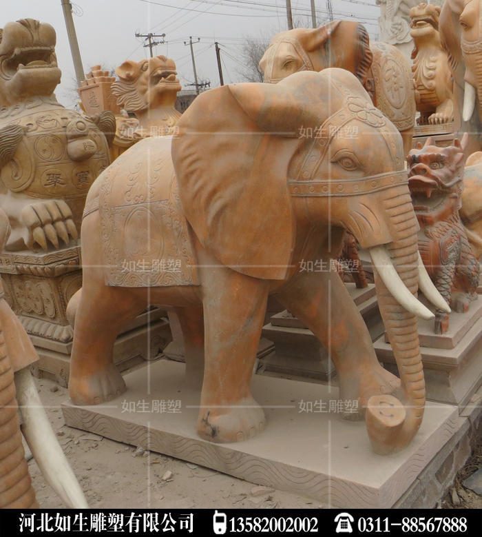 晚霞红石雕大象做工精细,纯手工雕刻石头大象,适合门前摆放大象