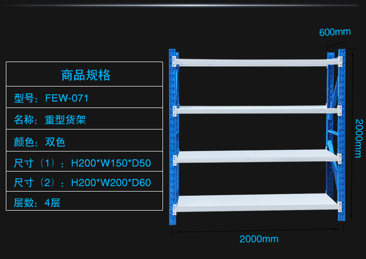 (重型的4层、每块层板承重200-500公斤以内的)