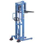 型 式 | 最 大 载重量 (kg) | 最低位 (mm) | 最高位 (mm) | 货叉(mm) | 脚幅(mm) | 全长 (mm) | 全幅 (mm) | 全高 (mm) | 车体 质量 (kg) |