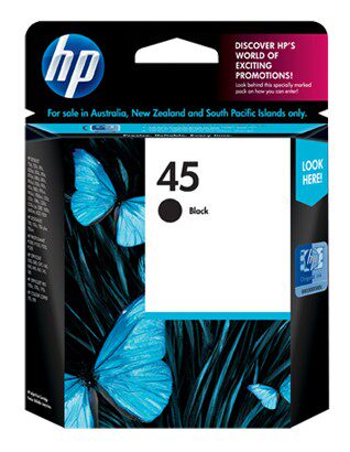 HP 45 号黑色墨盒 — 基于 5% 覆盖,打印量约930 页