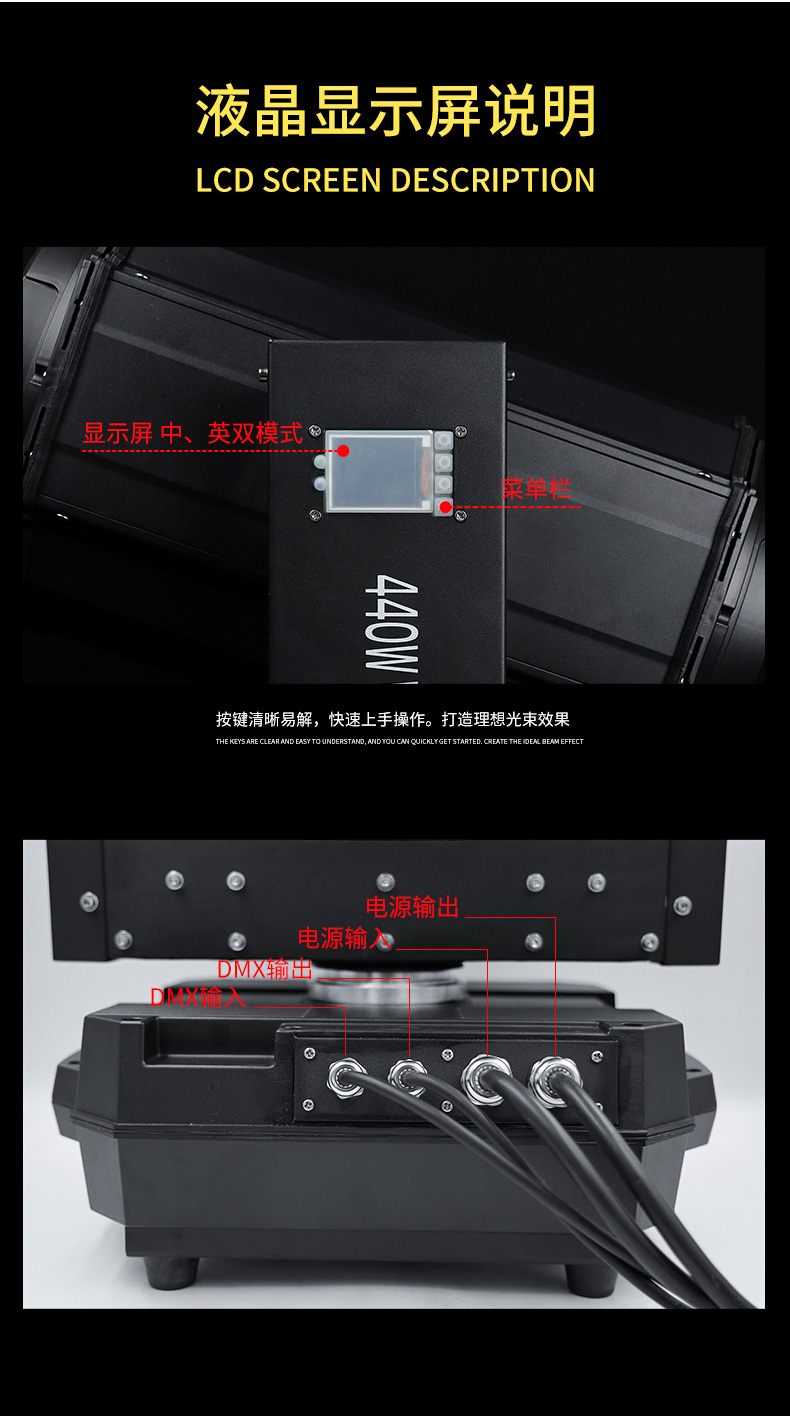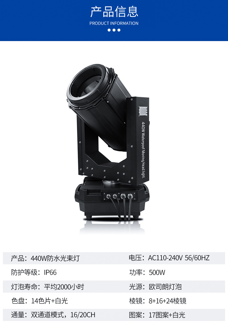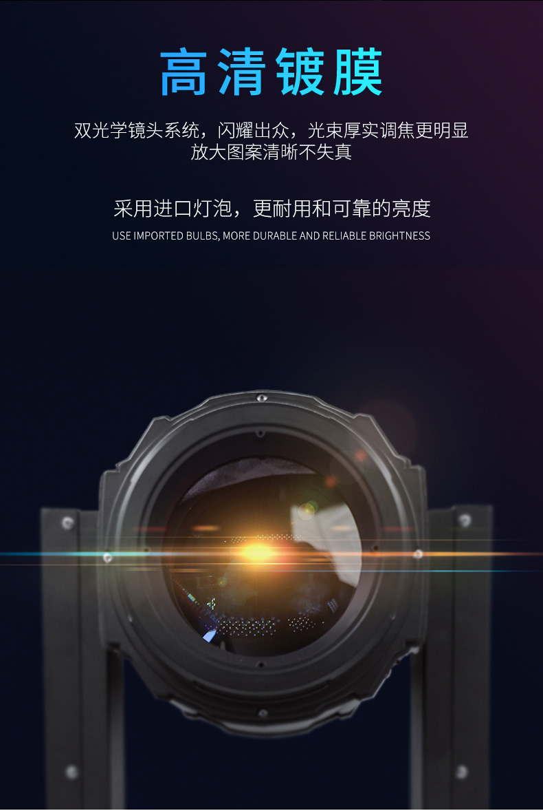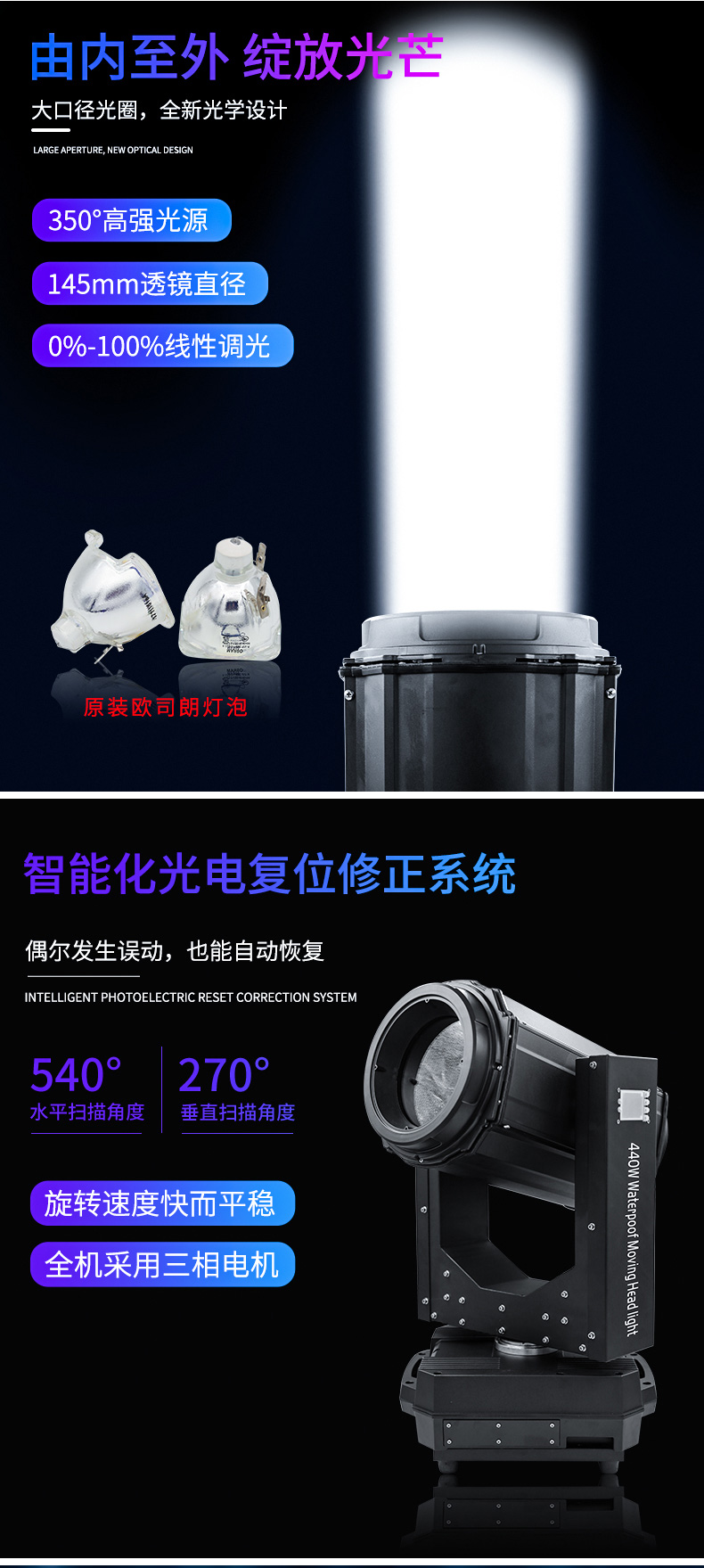 光源类型:OSRAM SIRIUS HRI 371W金卤杯泡和反光杯整体封装,光效更高,使用寿命长1500小时。
