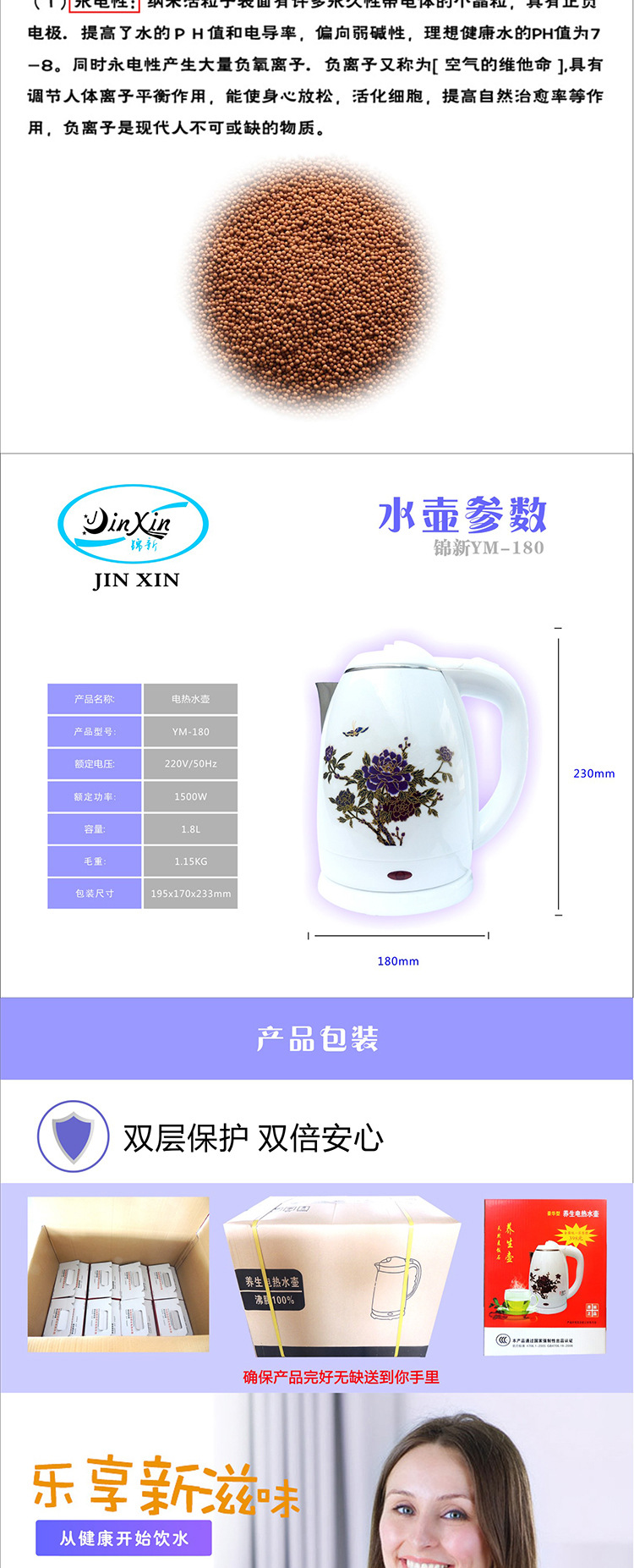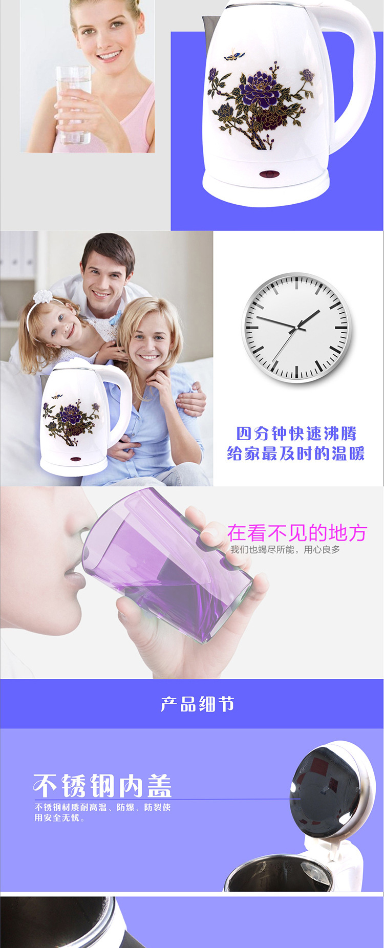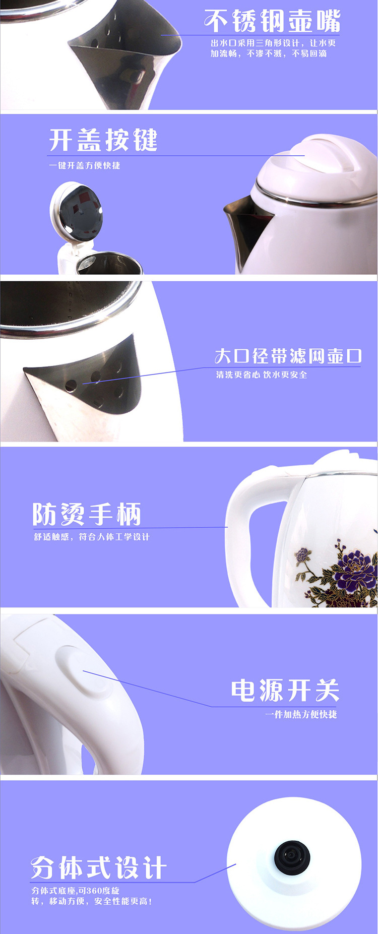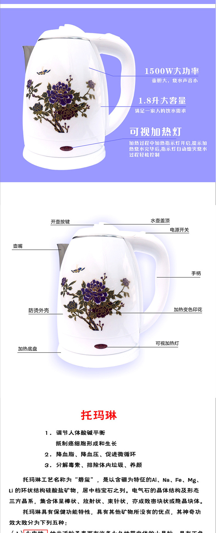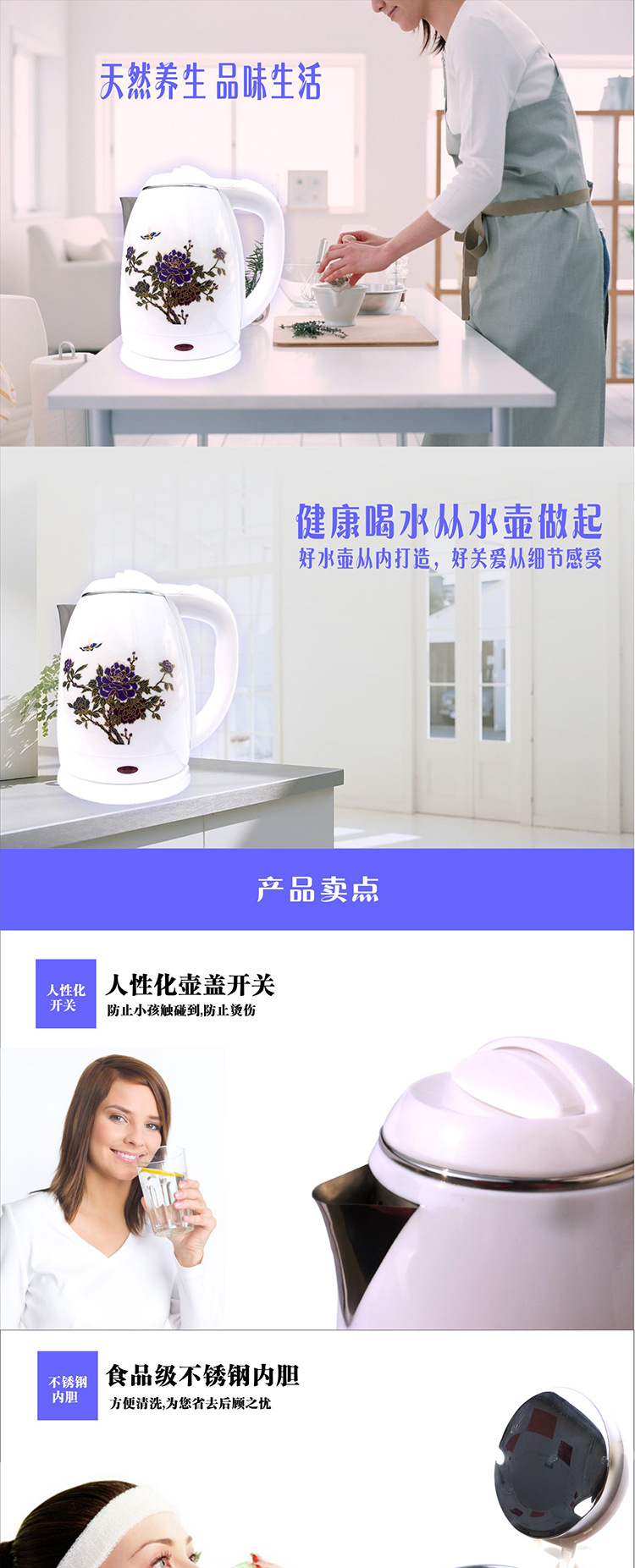 厂家直销1.8L不锈钢 双层防烫多色可选塑胶电热水壶