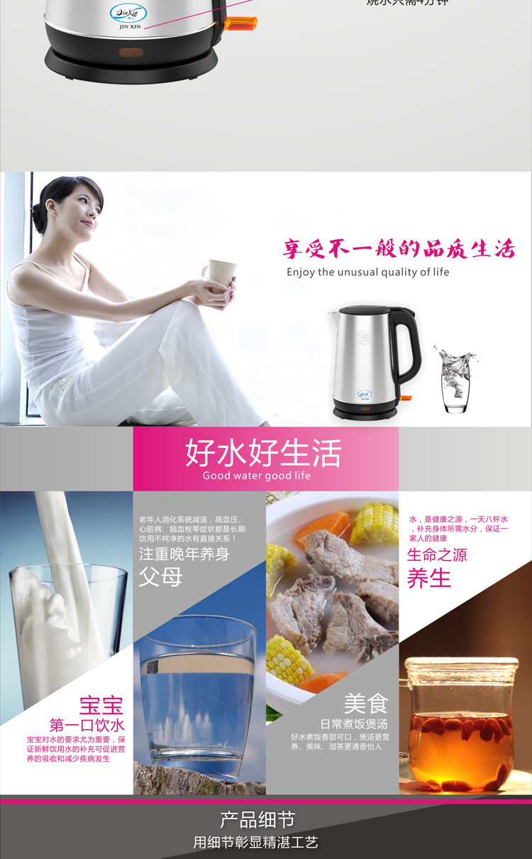 厂家直销电热水壶不锈钢防烫烧水壶