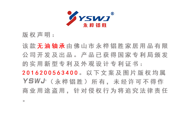 *采用独有无油轴承,品质保证,使用寿命更长久;