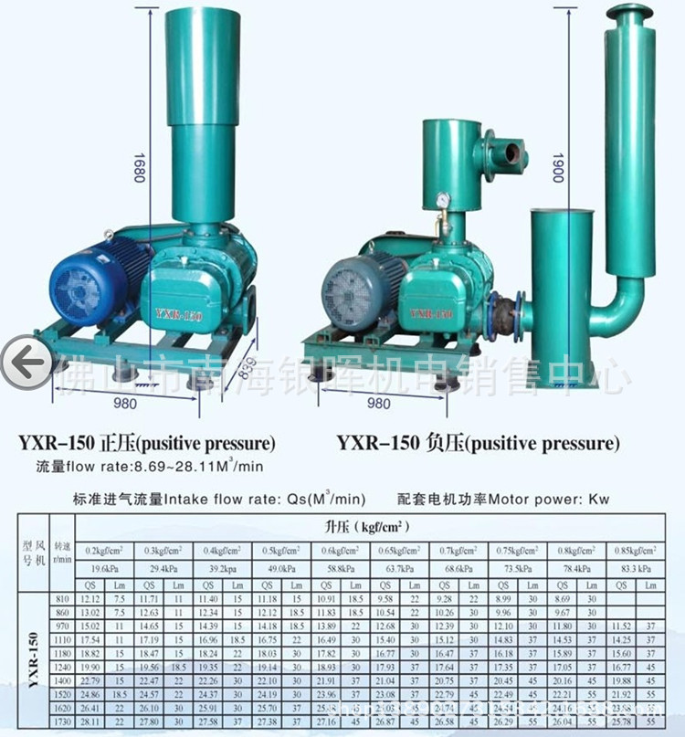 三叶罗茨风机是在我公司多年生产制造基础上,自行开发的新产品。它将风机、电机、进出口消音器等结合于一体,结构更加紧凑,安装与维护更加省心,大大的提高了空间的利用率。 50A型0.5m3/min-2m3/min 9.8kPa-58.8kPa 50型0.5m3/min-3m3/min 9.8kPa-78.4kPa 65型0.76m3/min-3.30m3/min 9.8kPa-58.8kPa 80型2.07m3/min-5.23m3/min 9.8kPa-78.4kPa 100型4.91m3/min-10.44m3/min 9.8kPa-98kPa 150型9.96m3/min-25.48m3/min 9.8kPa-98kPa 175型19.65m3/min-40.75m3/min 9.8kPa-98kPa 200型26.33m3/min-59.01m3/min 9.8kPa-98kPa 250.。。。。。。。。。。 300.。。。。。。。。。。