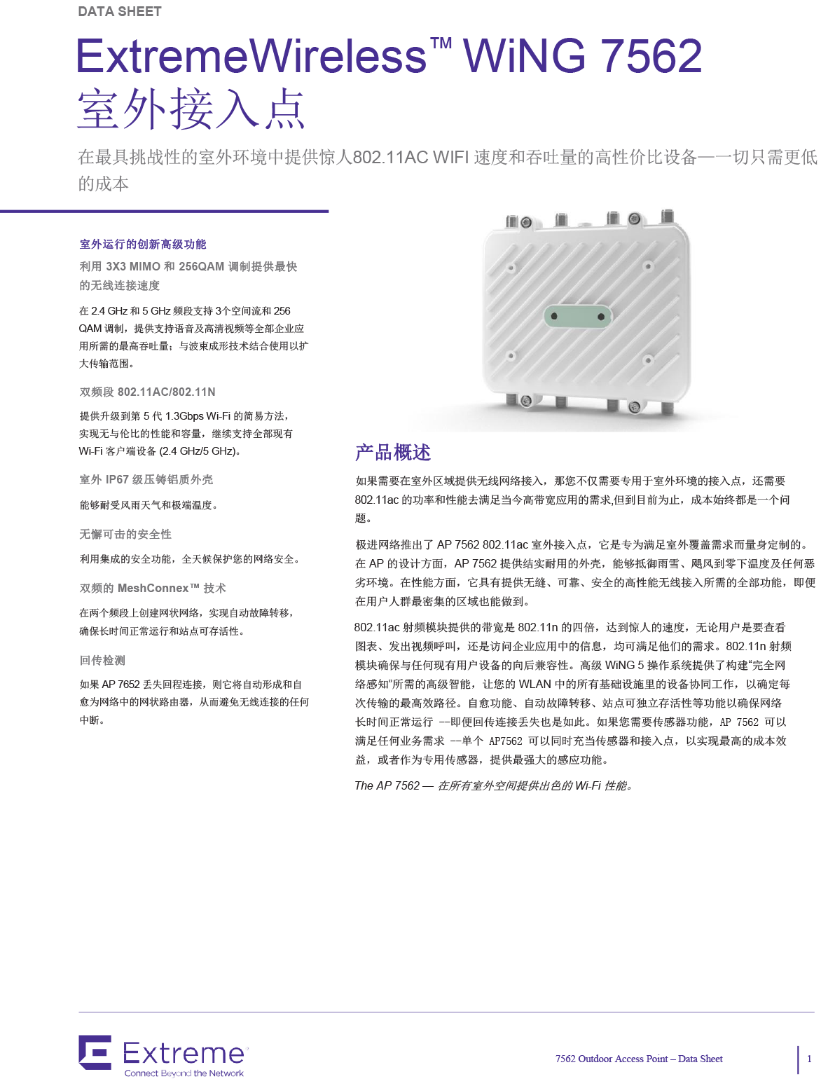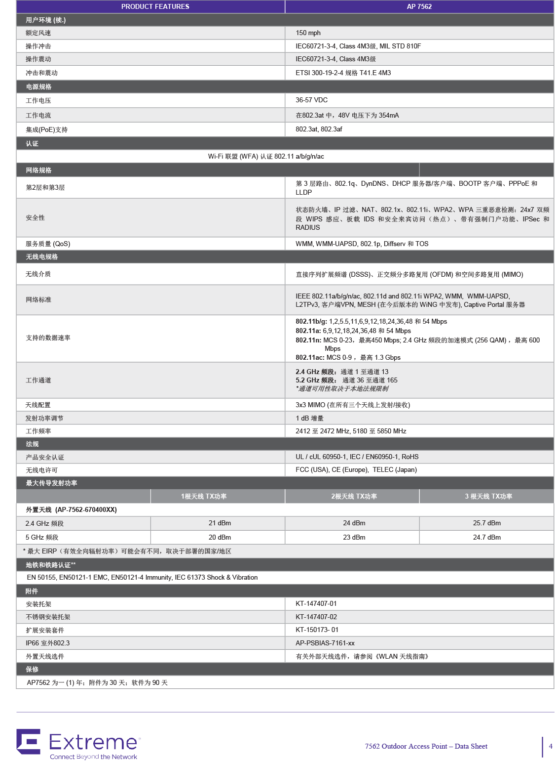 AP-7562-670042-WR 室外型双频 802.11ac接入点,3X3:3,2GE端口,外置天线,天线预装