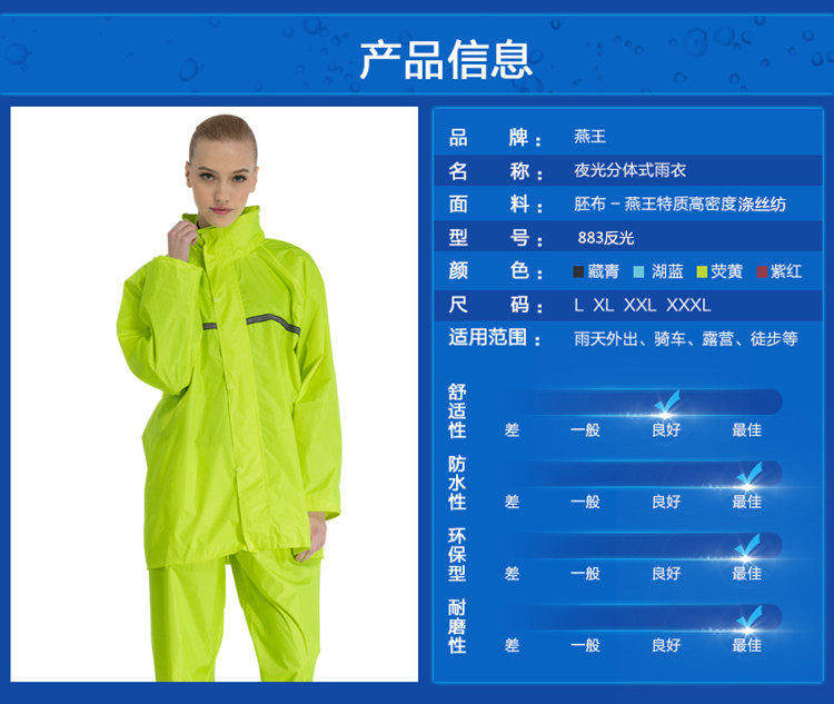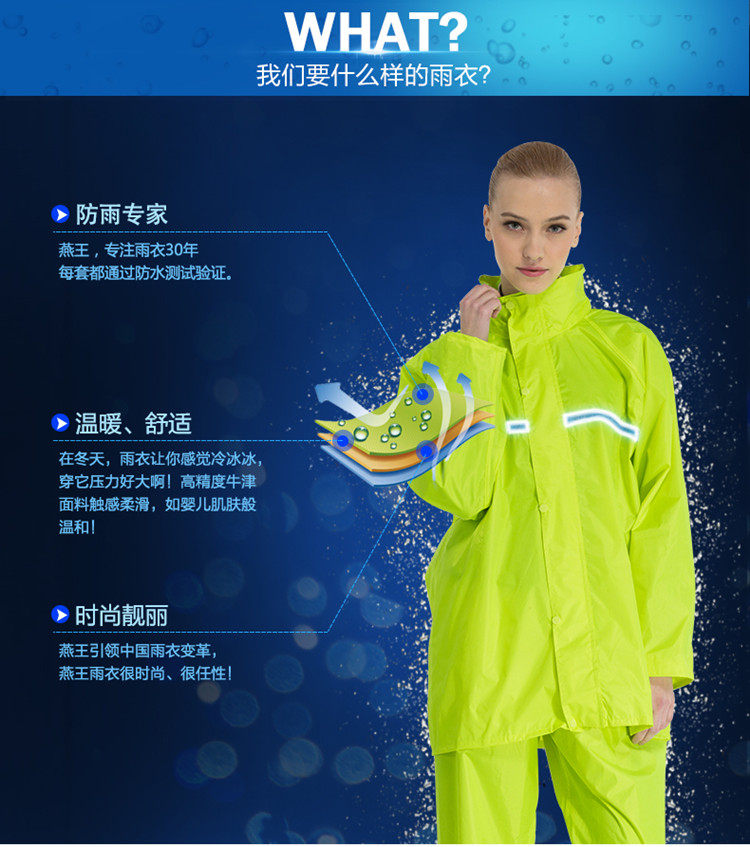 杭州金巢旅游用品有限公司是一家集设计开发、制造于一体的雨衣生产、销售企业,公司主要生产销售:燕王成人雨衣系列、儿童雨衣系列、自行车、电动车、摩托车雨披系列等产品,公司产品远销欧美、日韩、东南亚等地,欢迎来电订购,联系电话13065707026