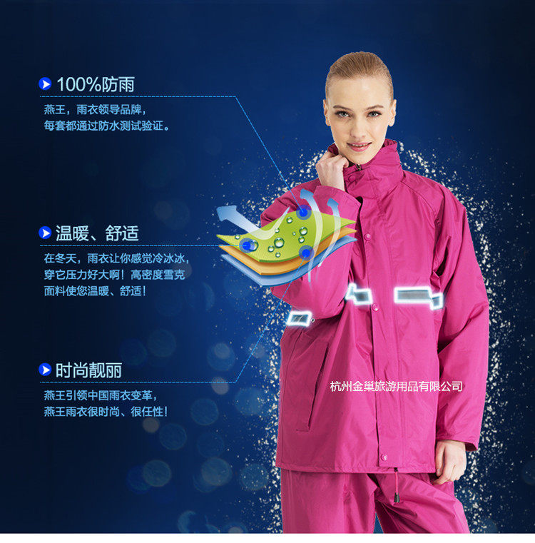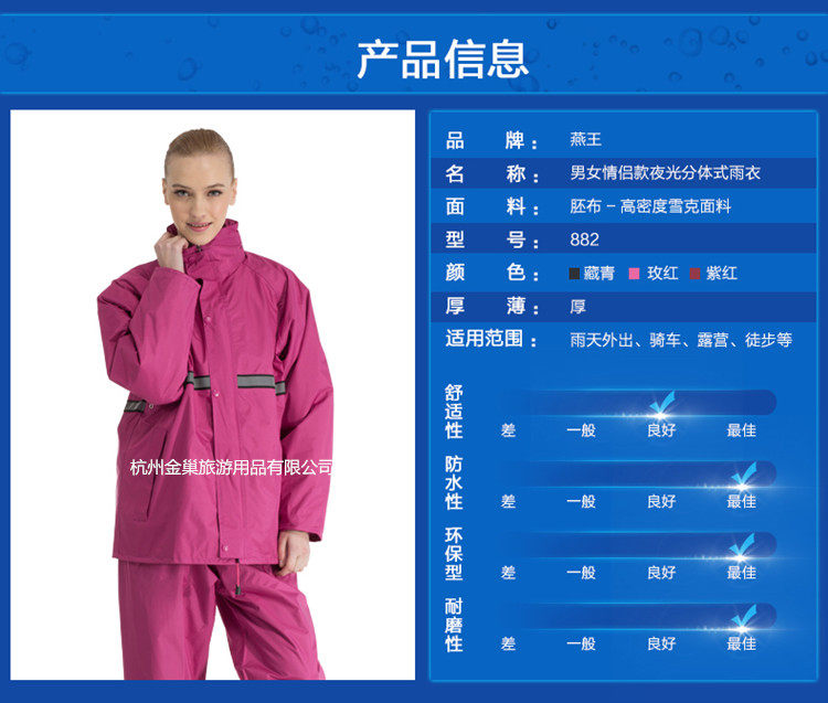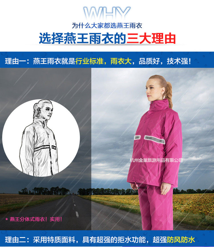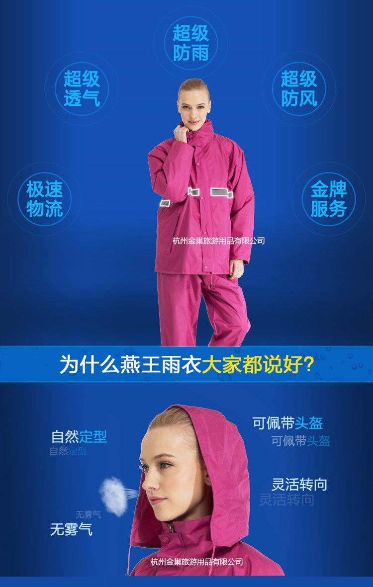 我公司是一家集设计开发、制造于一体的雨衣生产、销售企业,公司主要生产:成人雨衣系列,儿童雨衣系列,自行车、电动车、摩托车雨披系列等产品,公司产品远销欧美、日韩、东南亚等地