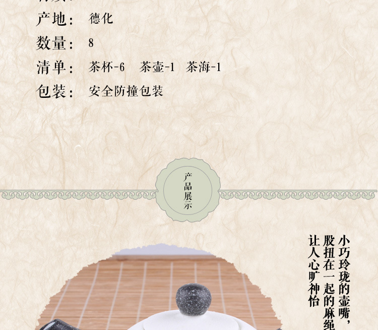 | 货号 | 123456 | 材质 | 陶瓷 | 产地 | 德化 |
