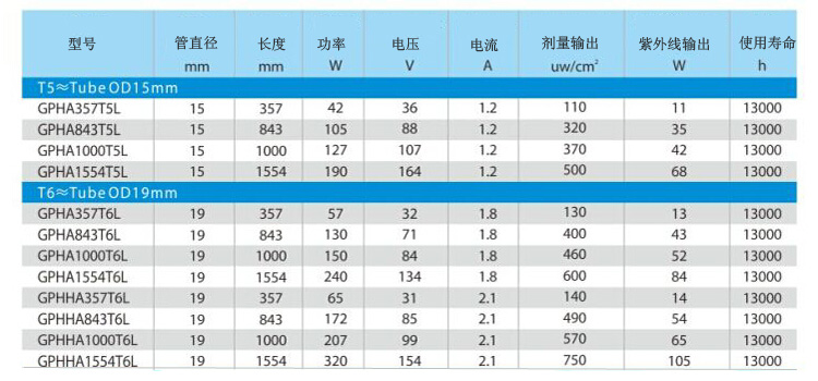 LIGHT SOURCES 杀菌灯管产品型号介绍