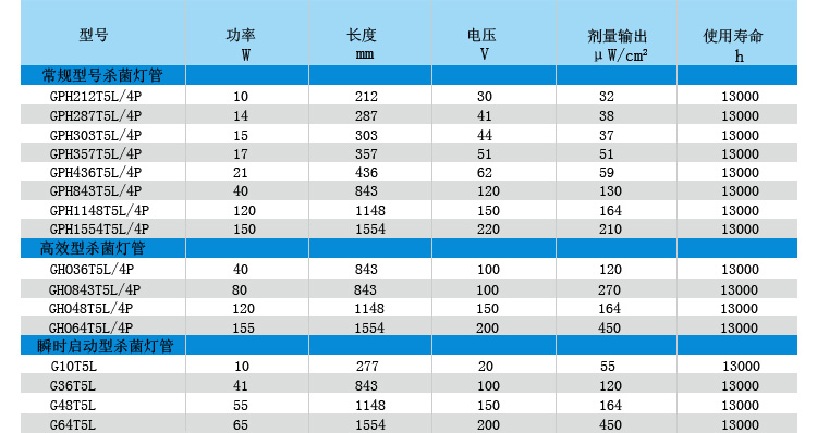 ·13000小时的超长寿命,即使在寿终仍能保持85%的紫外线输出。