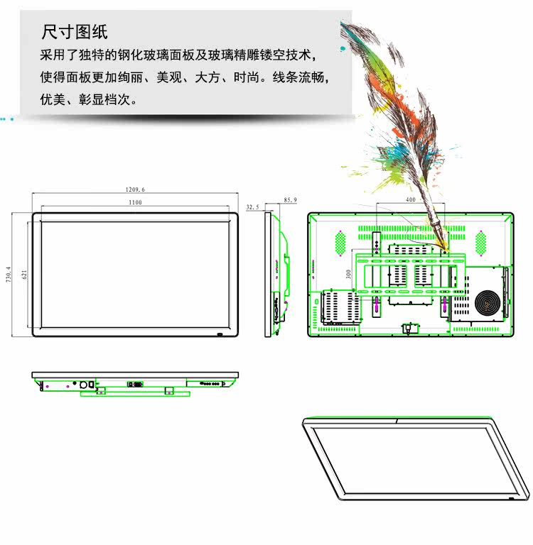 触摸屏:透光率98%,反应速度快,使用寿命6000万次,超高的适应性不受电流、电压和静电的干扰,适用某些恶略环境条件。