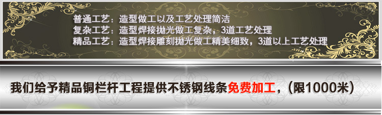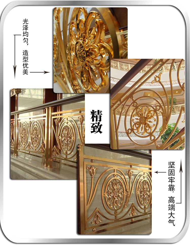 铜艺栏杆,耐腐蚀性和美观性.铜艺栏杆符合城市文明和现代人居的要求,铜艺栏杆美丽漂亮面慧外秀中,铜艺栏杆以流畅简洁的线形,玲珑通透的视觉感,带来人们全新的视觉.款式多样,尺寸可定制。