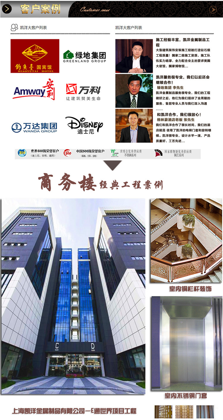 本公司专注高端艺术金属装饰工程20年,国内外大型建筑装饰工程经验丰富·金属装饰工程首选,自主生产基地,满足所有金属装饰工程所需,提供一整套建筑装饰解决方案,不仅仅是工程商,更是综合服务商。聘请同济大学建筑专业知名设计师,携手设计,满足您对金属装饰的所有需求,为您打造最经典的金属装饰工程。