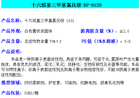 1631 十六烷基二甲基氯化铵 柔顺剂 乳化剂 抗静电 邦普化学