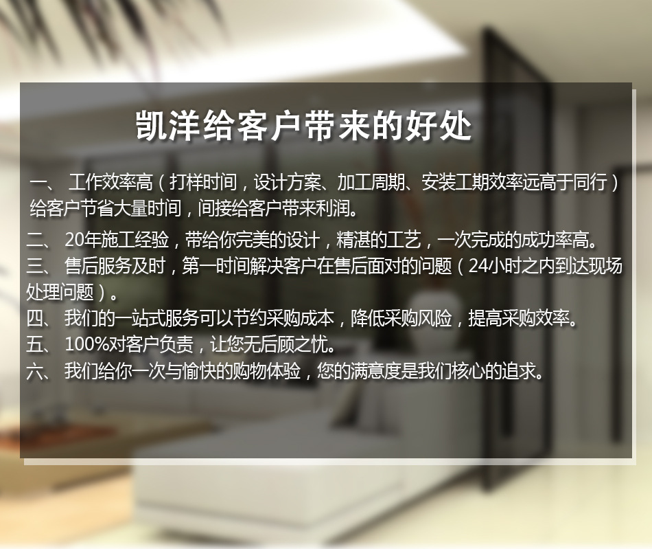 公司实力雄厚,多次获得大工程的最高奖 鲁班奖 白玉兰奖和东方杯奖,从业20年,具有丰富的和国内外各大建筑和装饰知名企业合作的经验,与绿地、金地、万科、绿城、新太阳等建筑集团良好合作,做了很多知名楼盘和建筑。量身定制最合理的金属装饰解决方案,资深项目经理,一对一贴心服务,因为专注·所以专业。